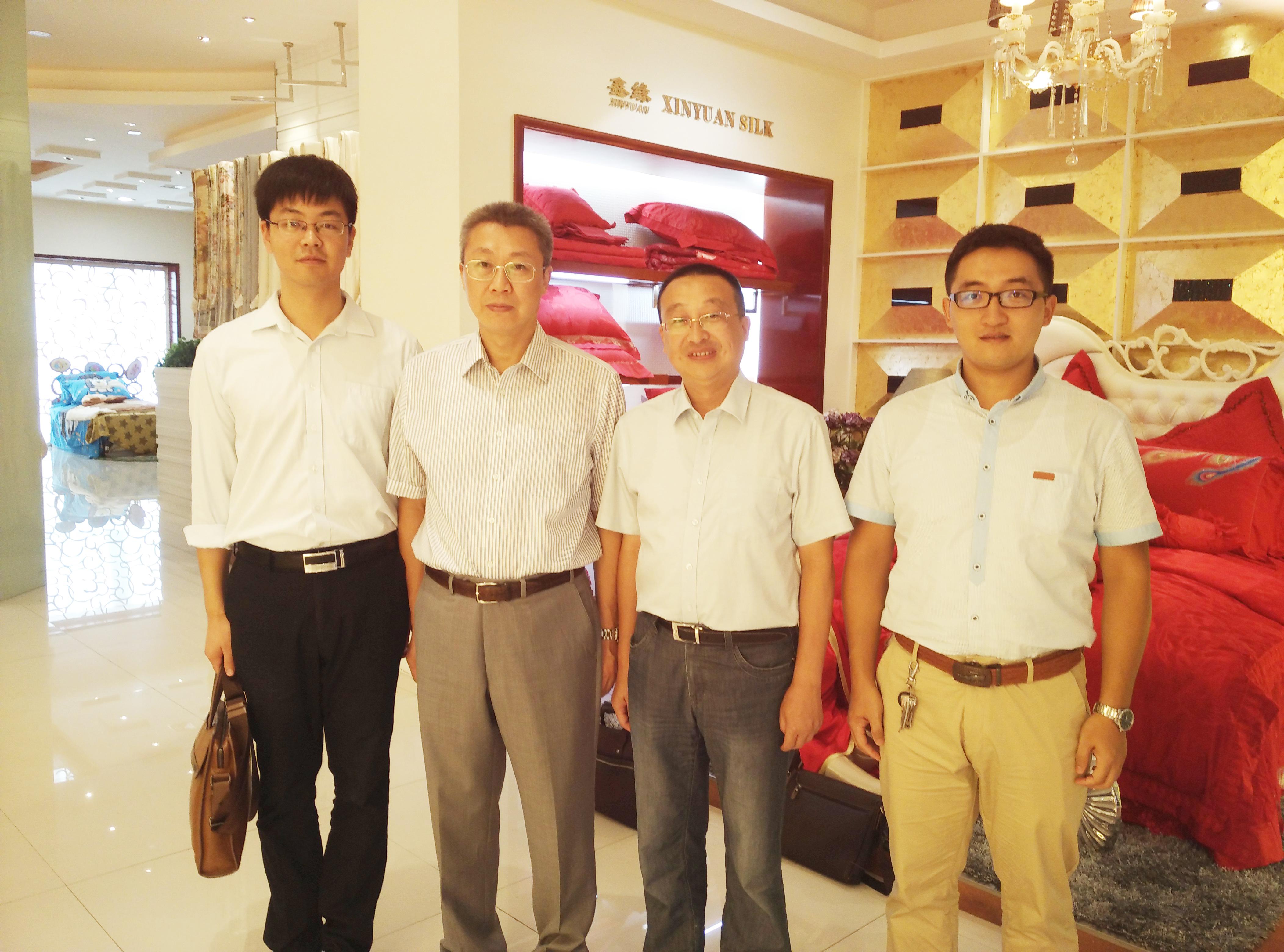 8月11日,吴总监一行来到了南通市纺织工业重县——海安,对海安县内的几家纺织类龙头企业分别进行了走访。鑫缘茧丝绸集团下辖18家分公司,15家控股企业,现已发展成为农业产业化国家重点龙头企业,集团形成了一条龙的茧丝绸产业化经营体系,是全国优质蚕茧、桑蚕丝、真丝服饰、家纺生产和出口基地。交流期间,集团副董事长孙道权首先对吴总监一行表示了热烈欢迎,简要介绍了集团的发展历程和经营现状,并召集各分公司经理,就本公司内的技术难题和需求展开了咨询和讨论,双方在自动缫丝机的研发、鲜茧缫丝的工艺流程以及活性染料染色产生浆斑等方面进行了重点讨论,希望在这些方面今后可以开展进一步的合作研究。
