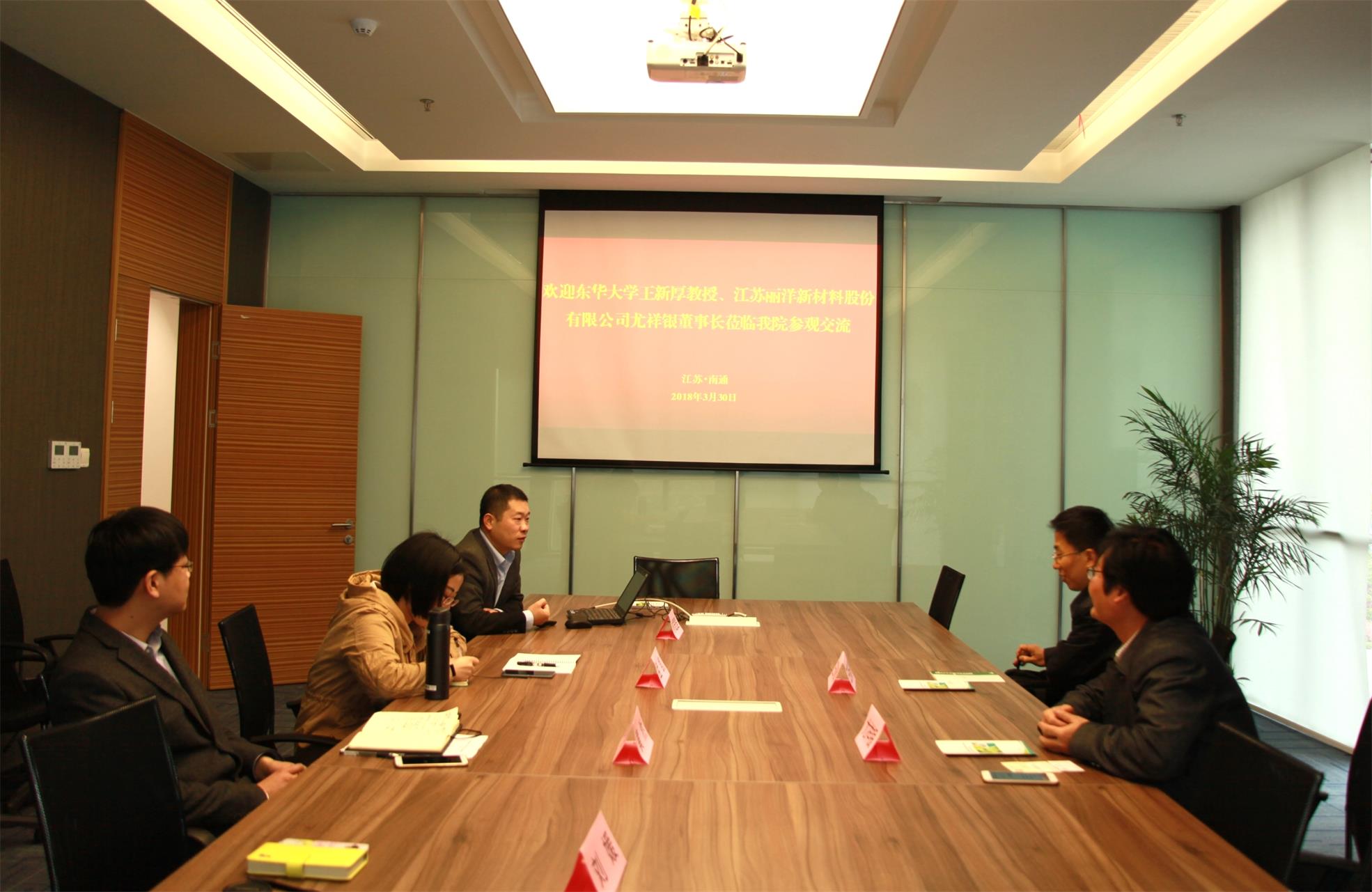 3月30日上午,东华大学教授王新厚、江苏丽洋新材料股份有限公司董事长尤祥银来我院参观交流,我院常务副院长孟凯及科研发展部相关人员进行了接待。