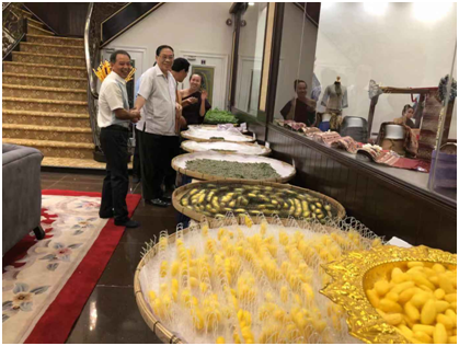 2018年11月16日至22日,应老挝有关方面邀请南通纺织丝绸产业技术研究院“高效集约化现代养蚕关键技术转移转化示范项目”暨“中老绿色丝绸中心蚕桑示范园”项目组参加了老挝一年一度的塔銮节盛会。塔銮节是老挝万象市规模最大、场面最隆重的传统宗教节日。项目积极响应国家“一带一路”战略倡议,发展新“丝绸之路”。通过以饲料代替新鲜桑叶养蚕,节约人力成本,提高桑蚕养殖的生产效率,在国内外率先实现养蚕现代化的转化示范,也为国内蚕桑丝绸生产拓展建立海外桥头堡。《中老绿色丝绸中心蚕桑示范园》位于老挝国首都万象市塞塔尼县萨帕卡农村(Saphakhanong village, Xaythanydistrict, Vientiane municipality),占地约10公顷,由开云kaiyun官方入口、老挝女双手公司、苏州大学和老挝国家科技部等单位合作共建,并得到老挝苏州大学等单位的大力支持。 中方融合了传统技艺与现代科技的“江苏现代蚕桑生产过程”展厅,吸引了众多市民参观。