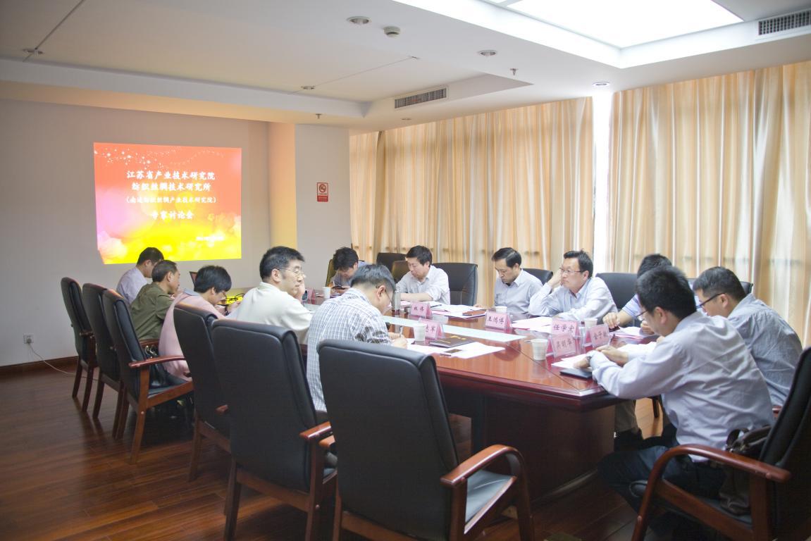 5月26日下午,江苏省产业技术研究院纺织丝绸技术研究所(南通纺织丝绸产业技术研究院)专家讨论会在南通市 科技局会议室顺利召开。来自东华大学、浙江理工大学、江南大学、南通大学、苏州大学的纺织学科专家,南通市科技局、南通市通州区科技新城管委会等相关单位的领导出席会议,会议由常务副院长孟凯主持。